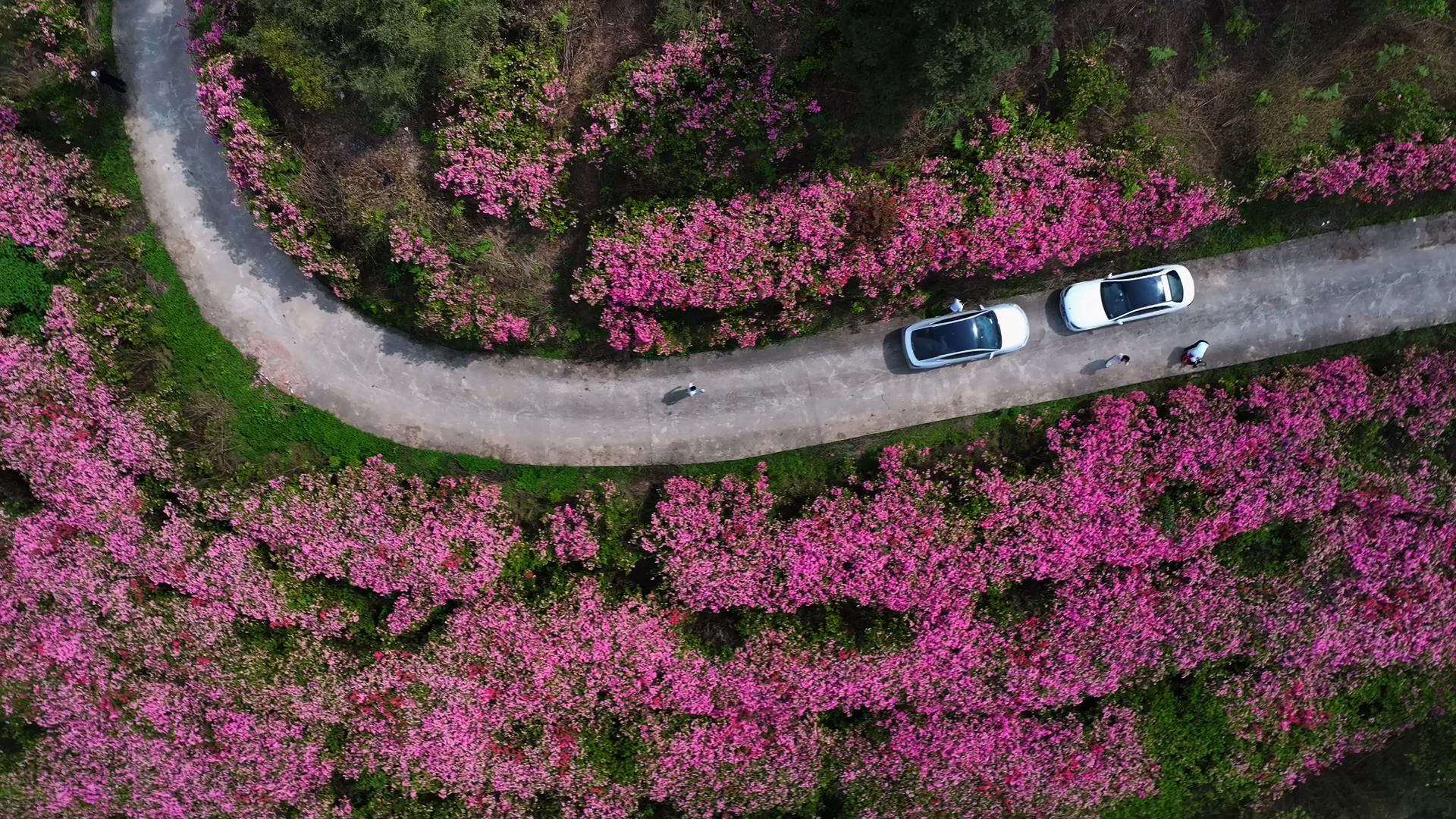 “最美人间四月天”,此言不虚。眼下,涪陵区马武镇杜鹃花谷,千亩杜鹃迎风怒放,如霞似锦,燃遍山野。绯红如焰,粉嫩若烟,素白胜雪——层层叠叠,顺着山势倾泻而下,与远山的青黛、近水的碧波交相辉映,仿佛大自然打翻了调色盘,将整个春天泼洒在这片山谷之间。