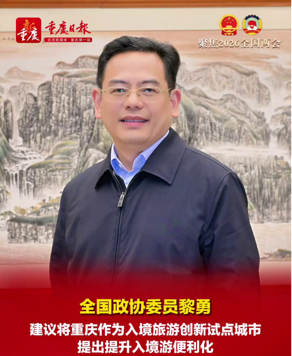 重庆日报等关注 | 全国政协委员黎勇:将重庆纳入创新试点 打造入境游首站城市