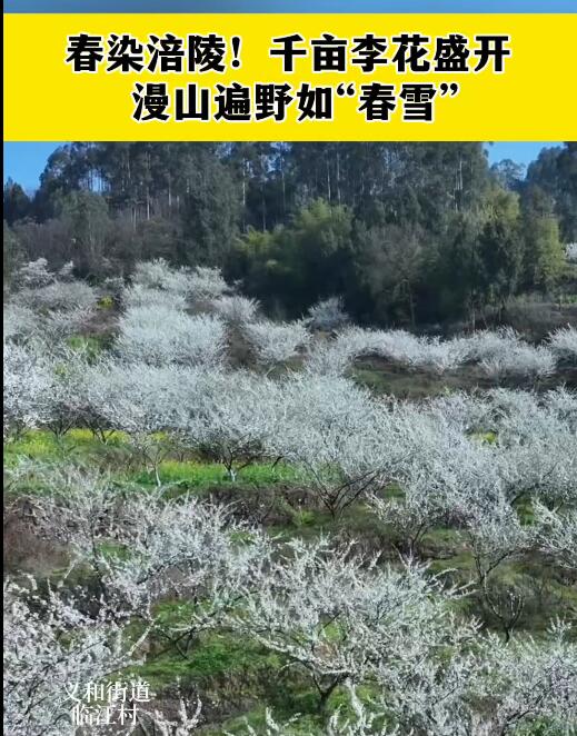 涪陵铜鼓湖公园春意浓 碧水繁花映晴空