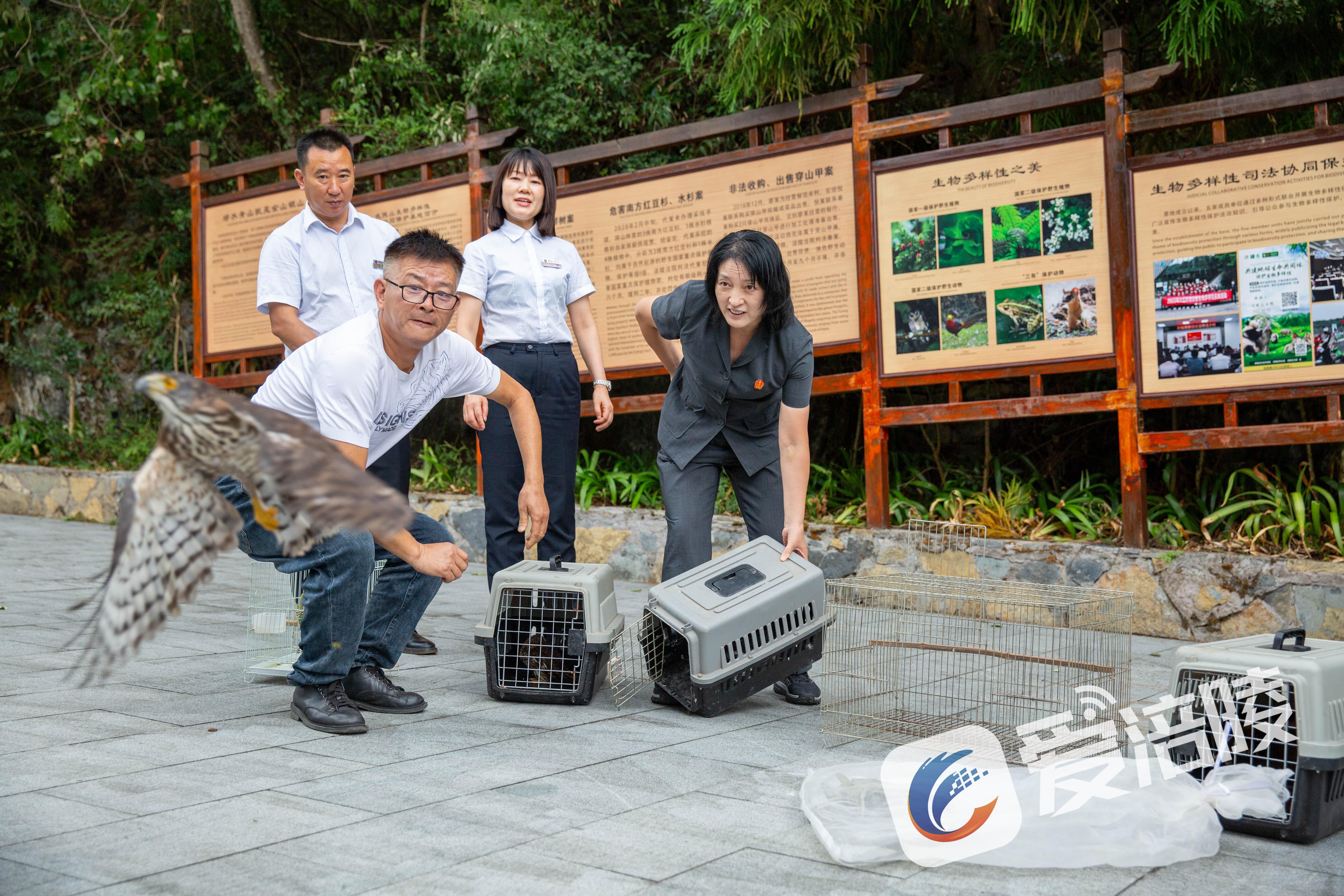 工作人员放飞野生动物