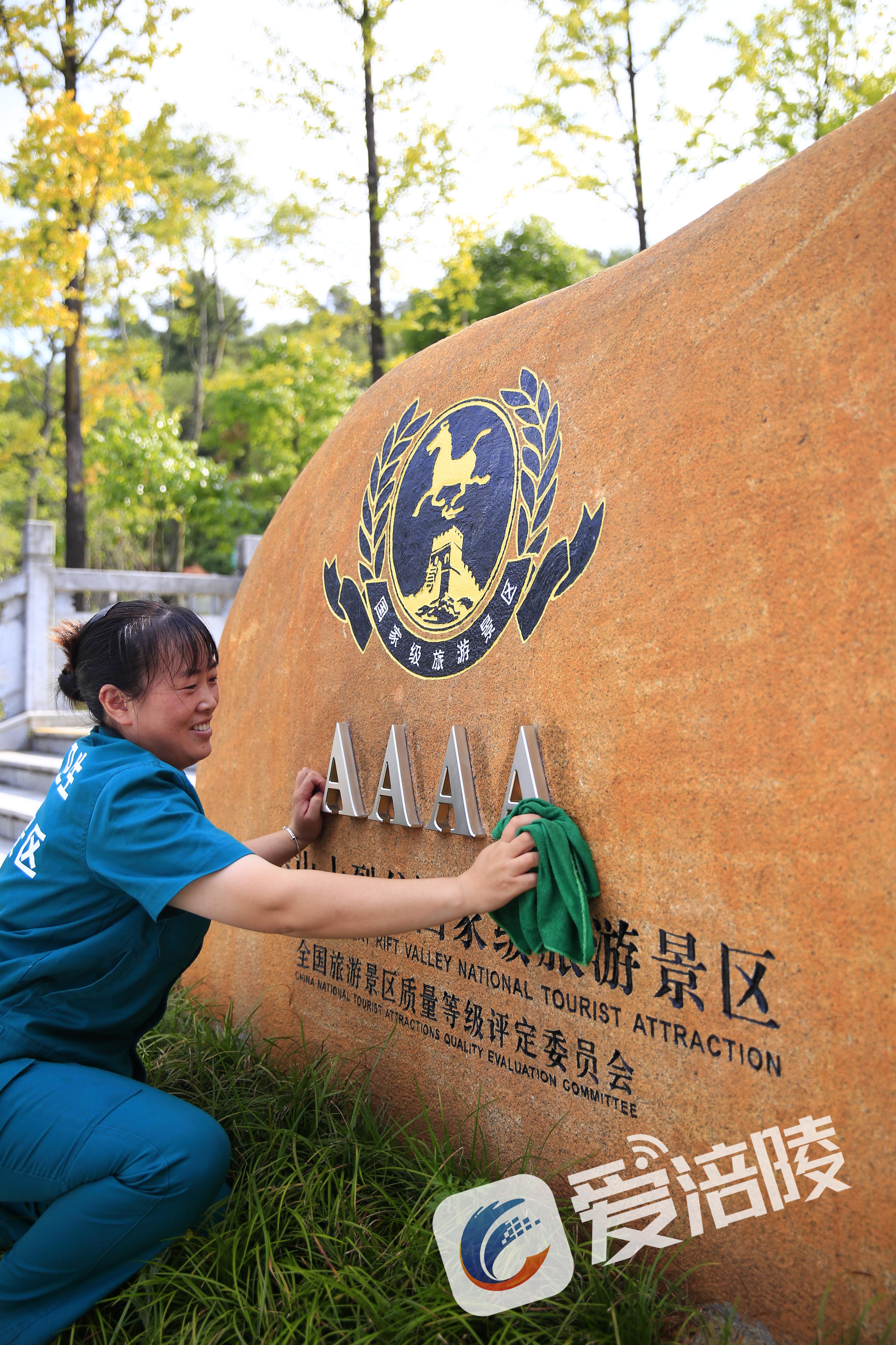 工作人员在景区做清洁