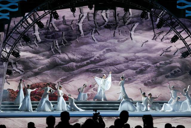 10月13日,在重庆涪陵举办的2023白鹤梁旅游文化节开幕式上,演员表演舞蹈。新华社记者 刘潺 摄