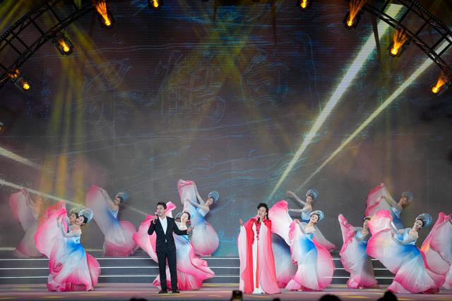 10月13日,在重庆涪陵举办的2023白鹤梁旅游文化节开幕式上,演员表演歌舞。新华社记者 刘潺 摄