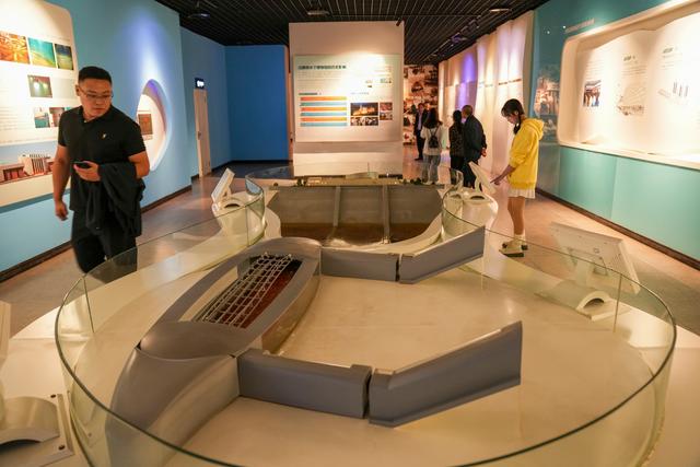 10月13日,游客在重庆涪陵白鹤梁水下博物馆的地面陈列馆参观。新华社记者 刘潺 摄