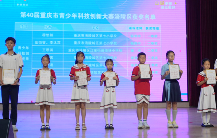 第40届重庆市青少年科技创新大赛涪陵区获奖代表领奖现场