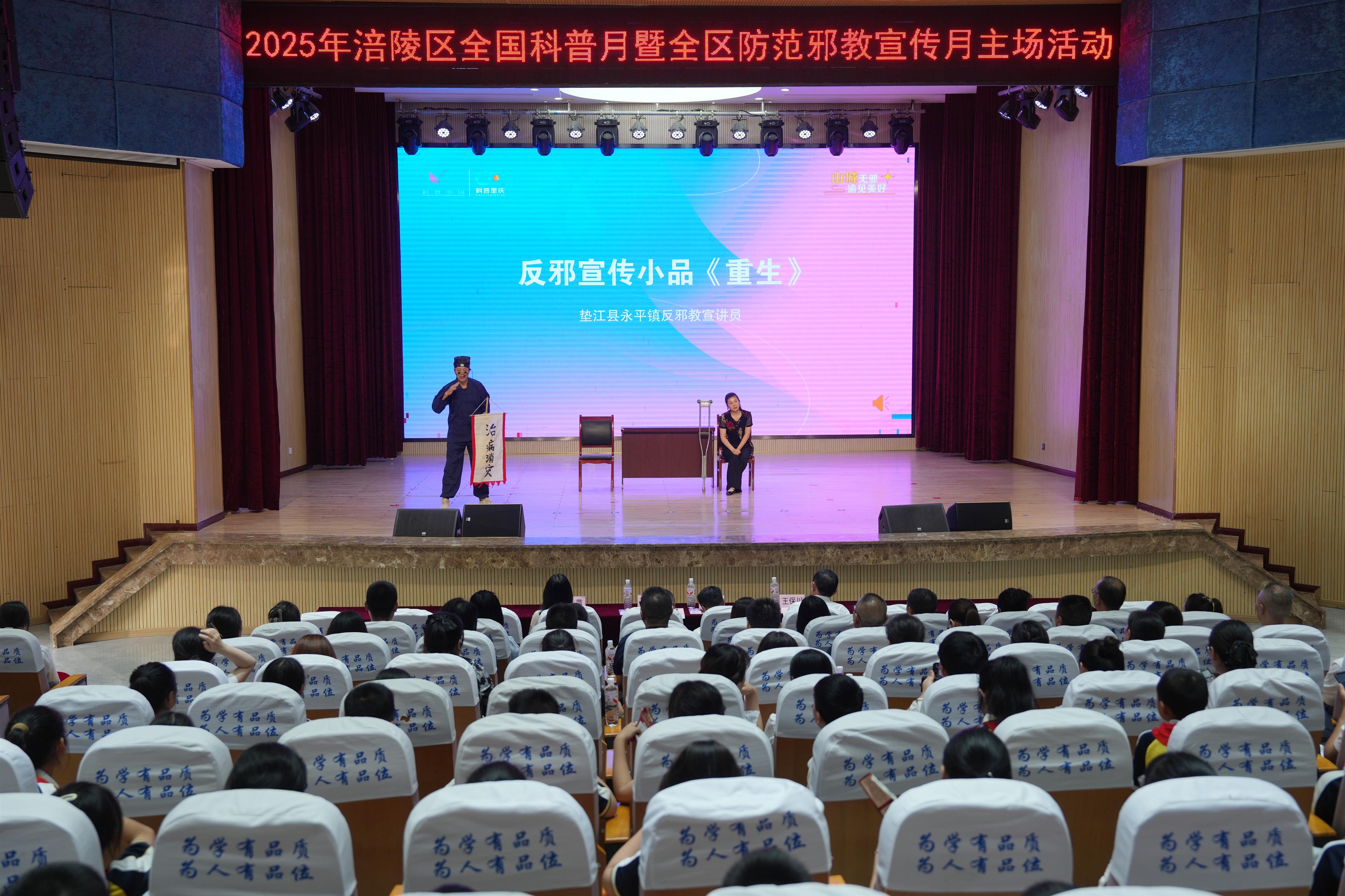 活动中,垫江县永平镇反邪教宣讲员表演了小品《重生》,深刻揭示邪教危害,增强群众防邪意识。此外,当天还开展了“对邪教说不”签名、科普体验和科技创新作品展览等互动环节。