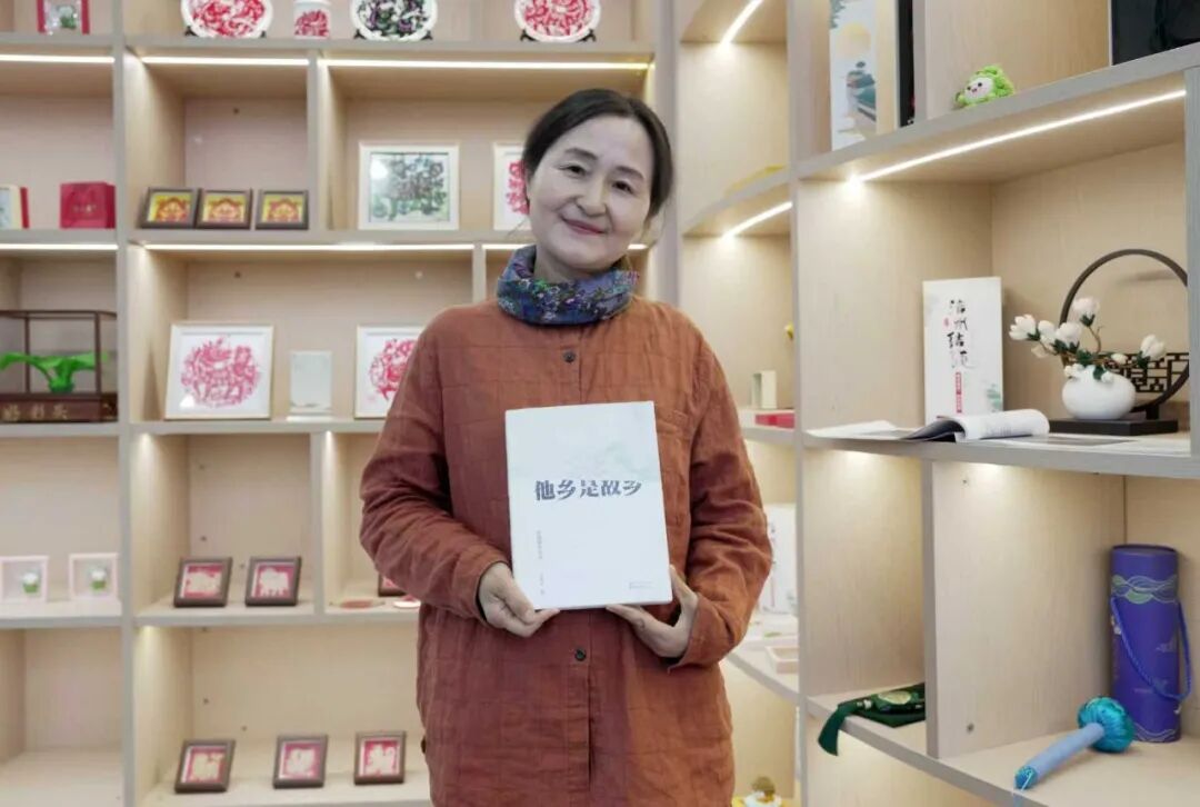 方格子展示其创作的长篇报告文学《他乡是故乡》