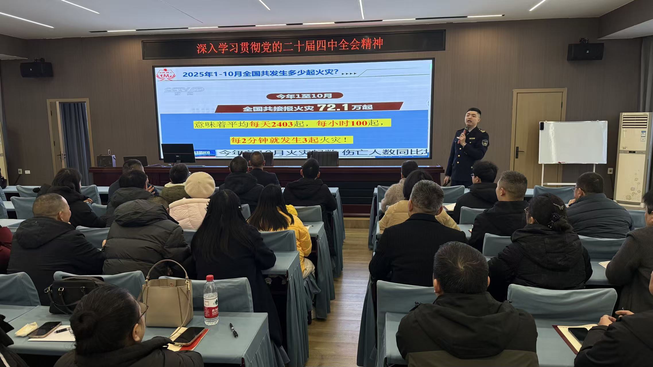 培训会上,讲师以近期发生的多起典型消防安全事故为切入点,通过视频资料、事故图片等直观形式,详细剖析了火灾发生的起因、蔓延规律及造成的严重后果。从办公区域电器老化、私拉乱接电线,到家庭生活中燃气使用不当、易燃物品存放违规等常见隐患,讲师逐一拆解风险点,着重强调“隐患险于明火,防范胜于救灾”的安全理念。针对机关单位办公场景特点,讲师深入讲解了消防安全核心知识,包括火灾初期报警流程、疏散逃生技巧、灭火器及消火栓的正确使用方法等,尤其对如何快速识别火灾隐患、规范用电用火行为进行了重点辅导,让大家从源头杜绝各类消防安全事故发生。