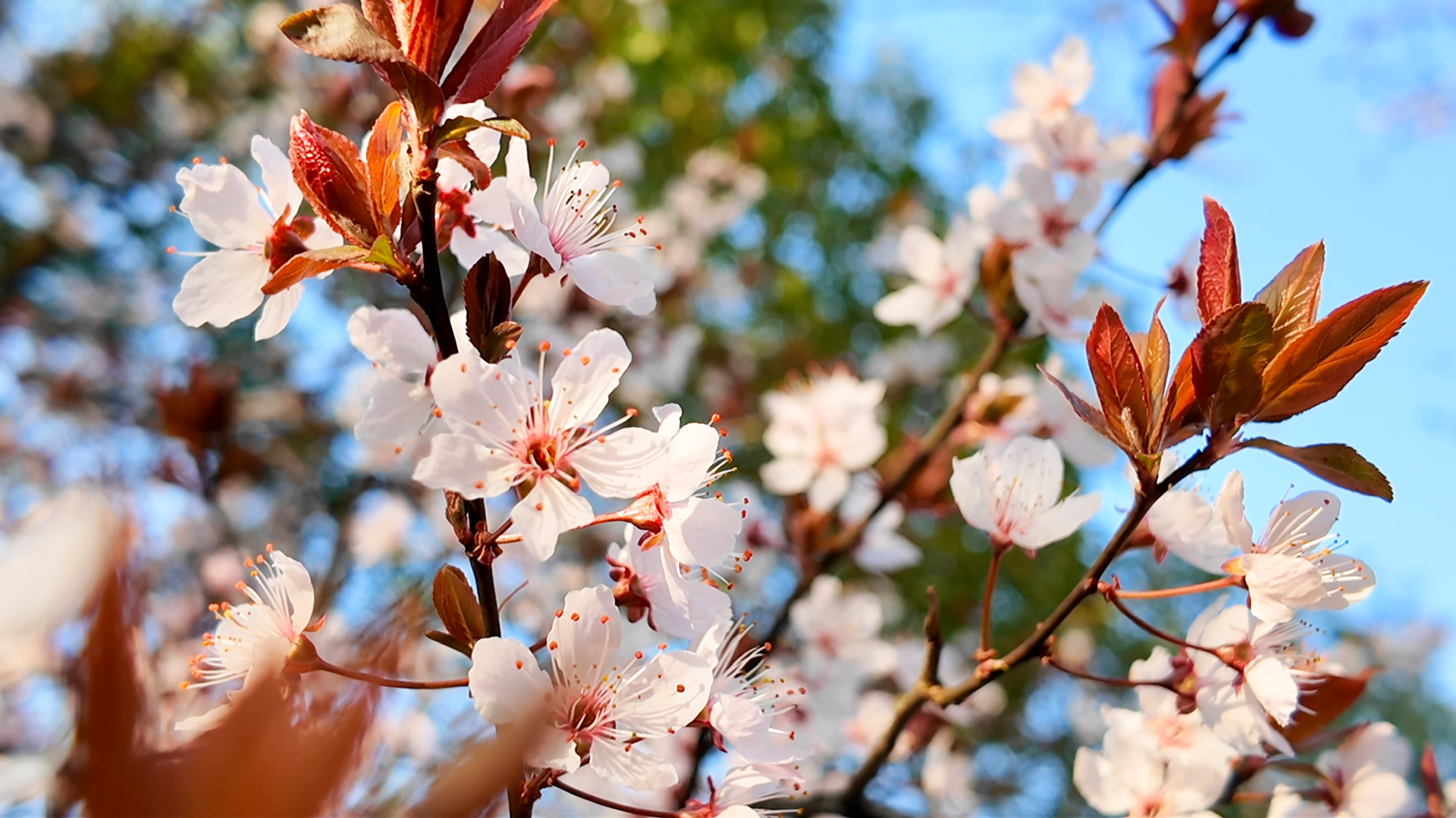 公园里的红叶李花绽放