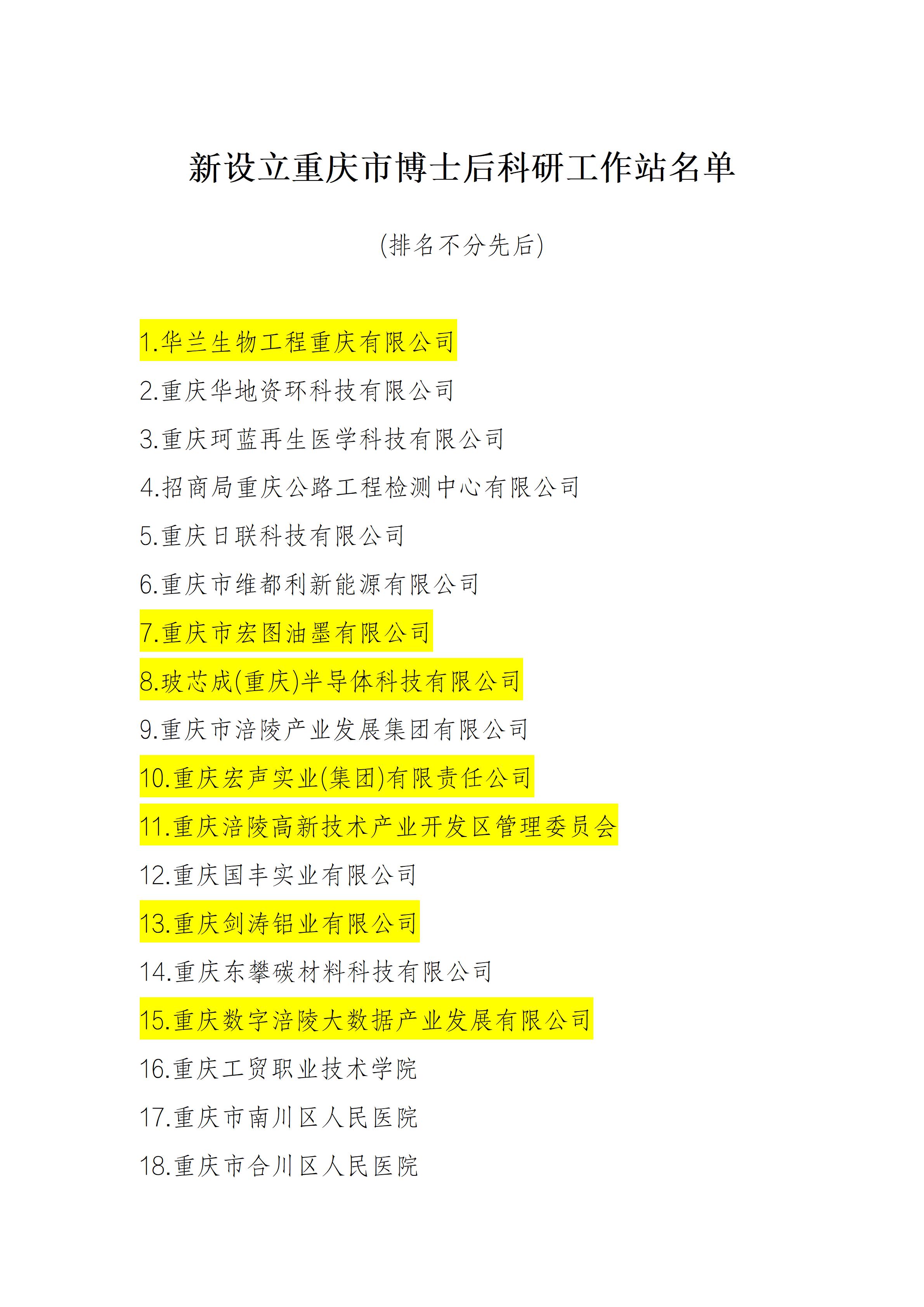 近日,重庆市人力资源和社会保障局办公室印发《重庆市人力资源和社会保障局办公室关于在华兰生物工程重庆有限公司等18家单位设立市级博士后科研工作站的通知》,涪陵高新区(涪陵综保区)共有7家单位成功获批设立博士后科研工作站,园区高层次人才引育矩阵持续扩容,科技创新赋能产业高质量发展再添硬核支撑。