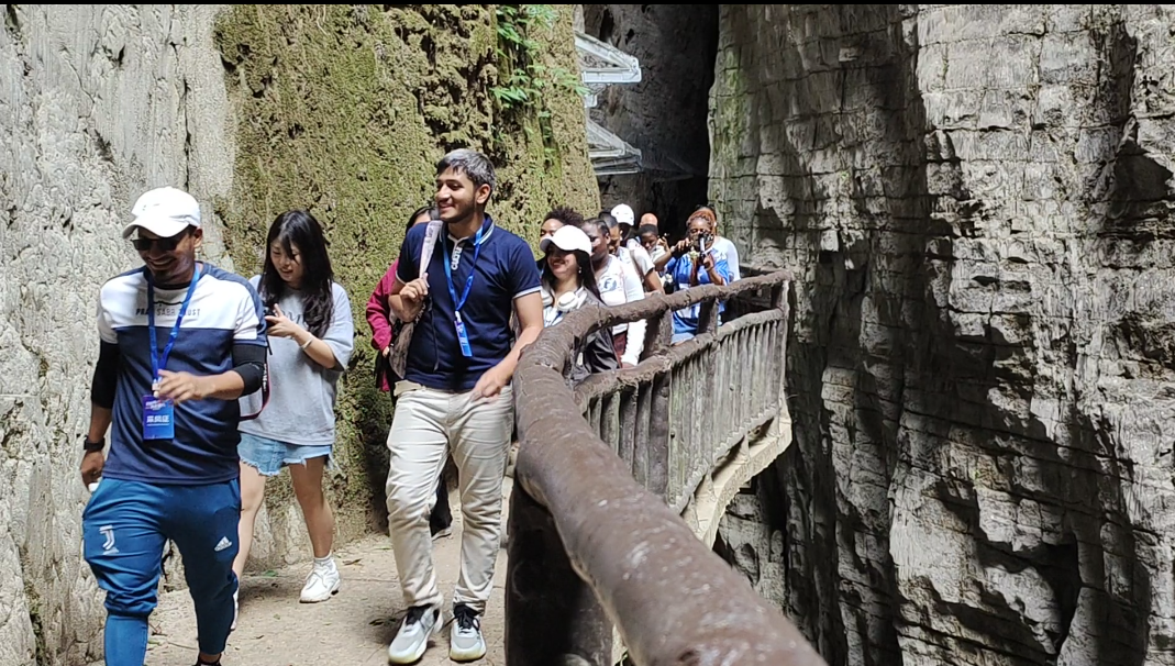 12名留学生探秘武陵山大裂谷