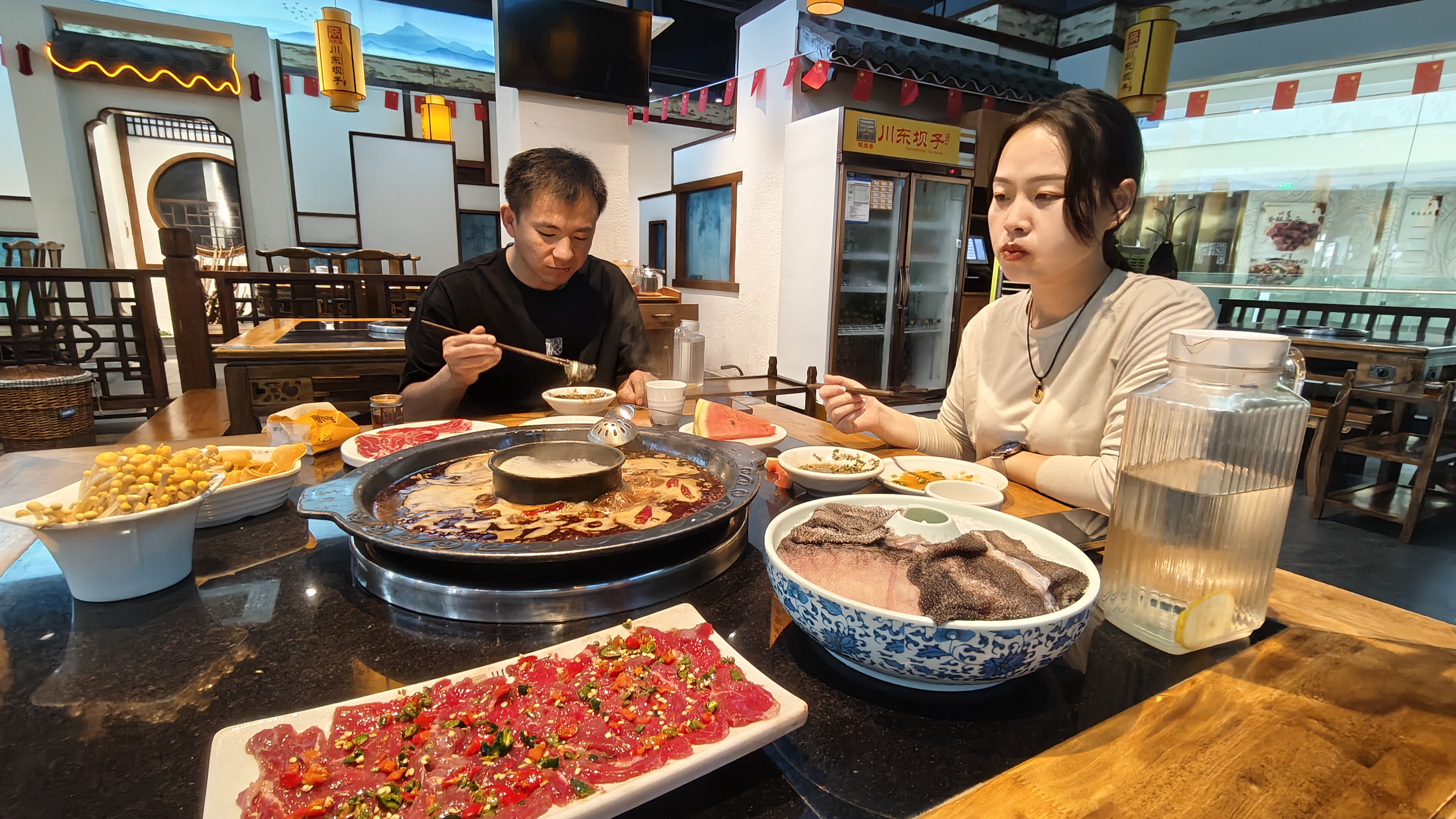 天寒人心暖 景区邀建设者吃火锅